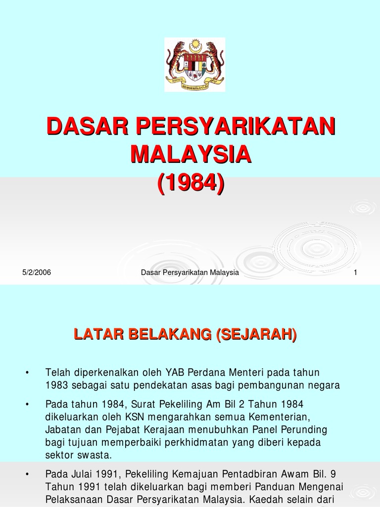 2017- DASAR PERSYARIKATAN MALAYSIA.pptx - LATAR BELAKANG Dasar ![]()